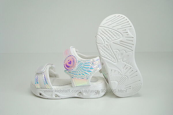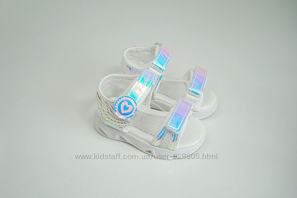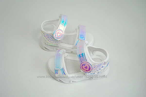 Дитячі білі босоніжки з мигалками – яскравий та веселий вибір для малечі. Завдяки миготливим деталям, вони привертають увагу та дають додаткову безпеку у темний час доби. Обирайте ці зручні та стильні босоніжки для вашої дівчинки!Матеріал: