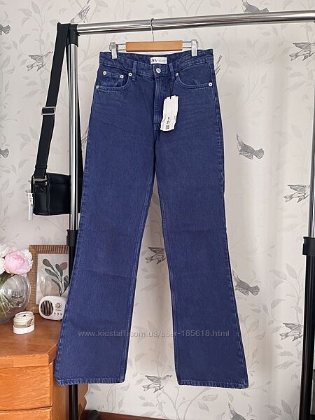 Фото 1-4 - Трендові джинси Zara, модель Bootcut - розширені донизу, середня посадка, мають п‘ять карманів, інтенсивний синій колір.Матеріал - 100% котон.
