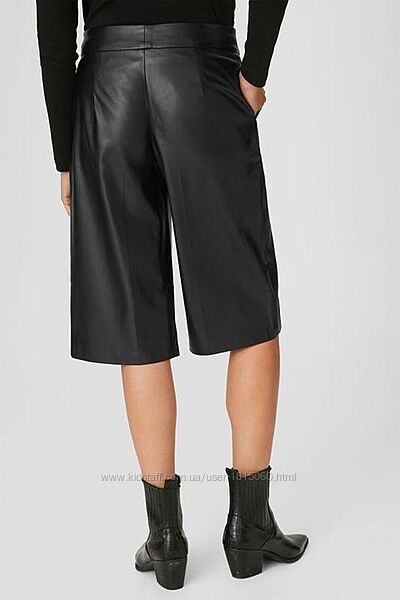 Между шортами-бермудами и брюками-кюлотами из искусственной кожи эти брюки C&A из Premium коллекции, прекрасно сочетаются как с рубашкой и ботинками / ботильонами, так и с кроссовками и джемпером.Два размера в наличии - по бирочке 34 и 38, но лучше смотрите мерочки и решайте сами)