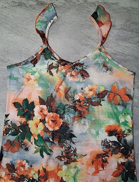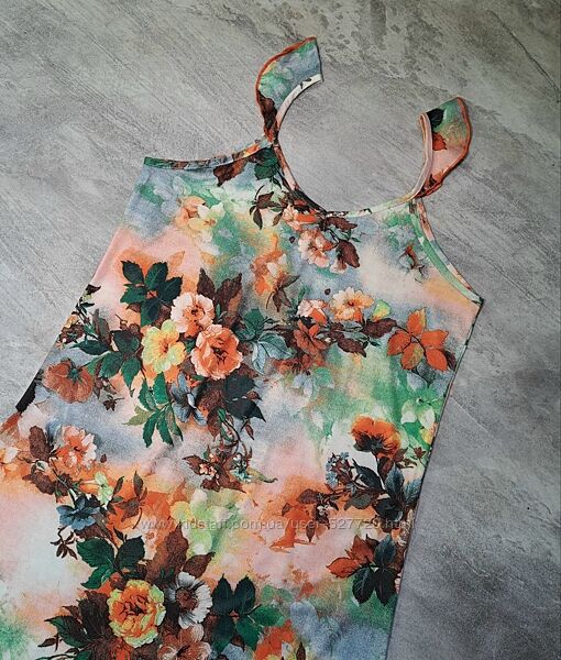 Трикотажная ночная рубашка свободного кроя на бретелях с рюшами.Материал: трикотаж