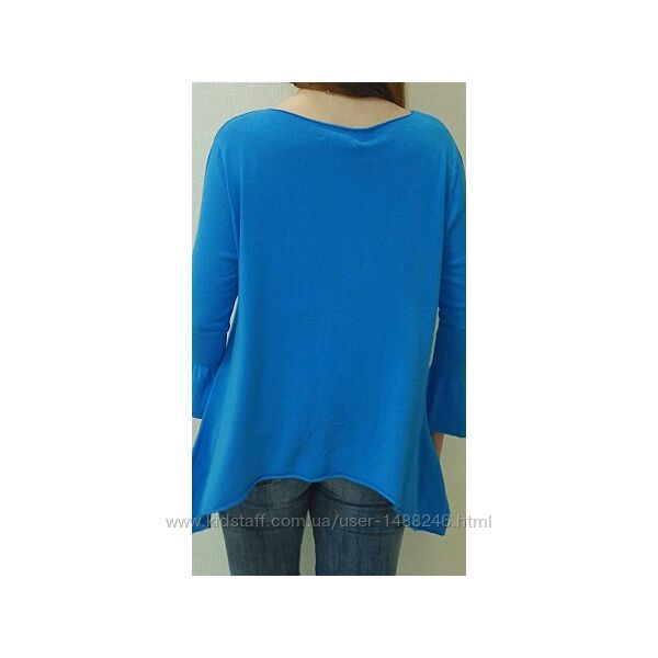 Пуловер голубого цвета с расклешенными рукавамиСостав: 79% вискоза, 21% полиамид