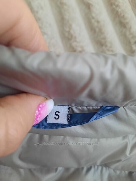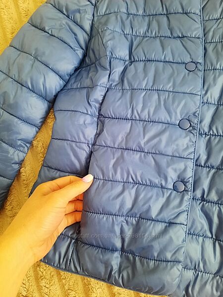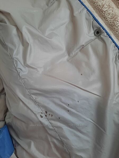 Цвет , красивый синий, застёжка-кнопки, карманы на молнии. На подкладка есть небольшие пятнышки, в носке не заметно. Лёгкая, мягкая , приятная к телу. Размер S