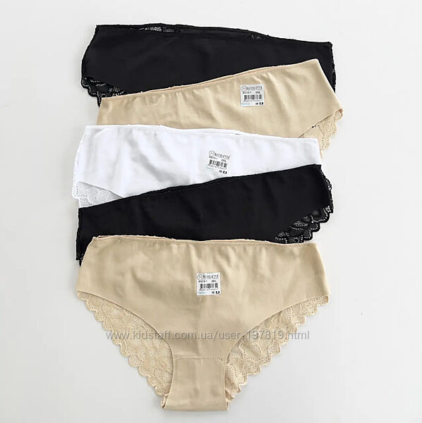 Подробное описание: Набор 5 шт. Женские однотонные трусы с кружевом М-5XL ТМ Nicoletta. Турция.