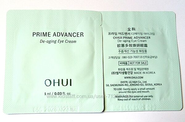 Подробное описание: OHUI Prime Advancer De-aging Eye Cream 1мл лифтинг крем под глаза