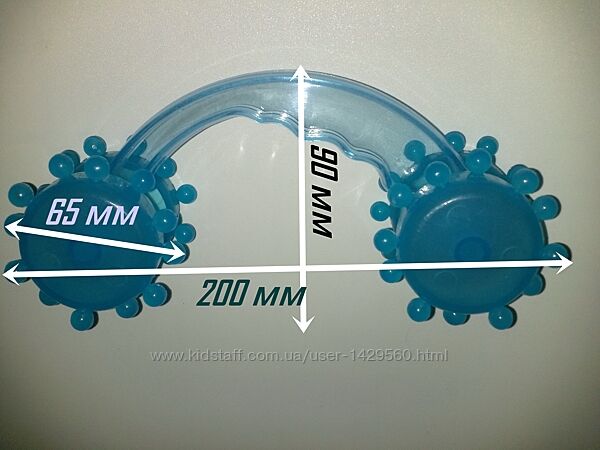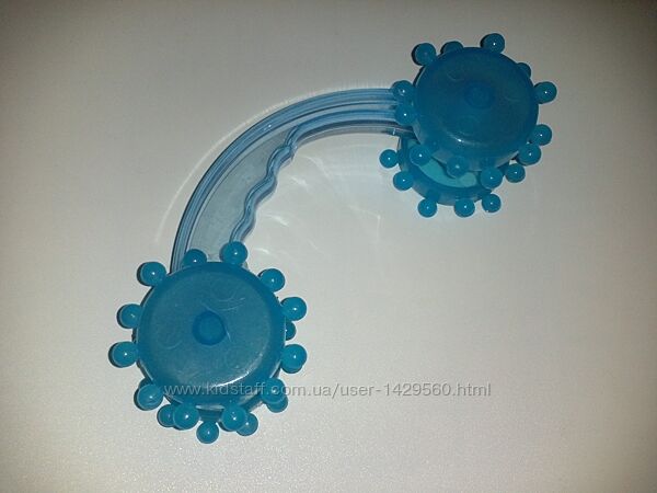 Материал пластик, размеры на фото, изогнутая форма, удобная ручка – всё эргономично и продумано. Массажер хорош для массажа тела, рук, ног и головы. Колёсики имеют специальные круглые выступы благодаря чему и происходит массаж, лёгки е в прокручивании.