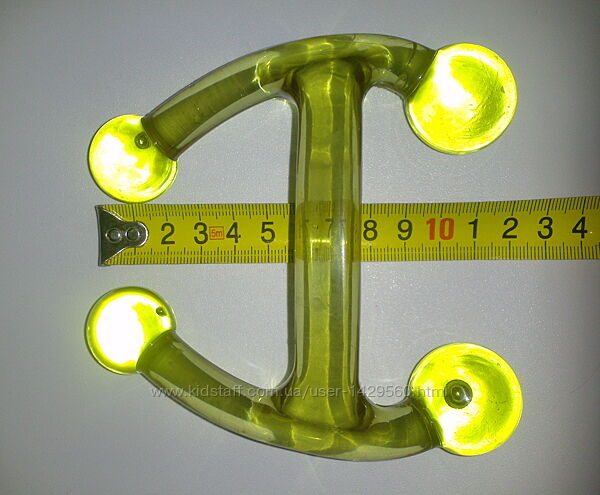 Материал прочный литой пластик, размеры на фото, изогнутая форма, удобная ручка – всё эргономично и продумано. Масажер хорош для массажа тела, рук, ног и головы.