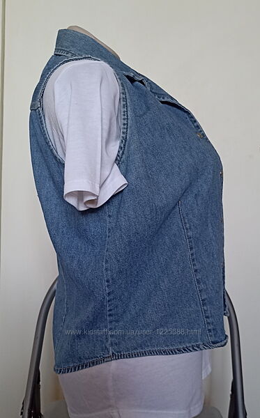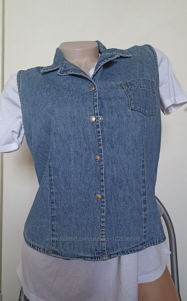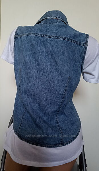 Стан дуже хороший, без дефектів Джинс тонкий, застібається на маленькі кнопки Розмір вказано М, підійде і на S Заміри: Напівобхват грудей 46 Довжина по спинці 54