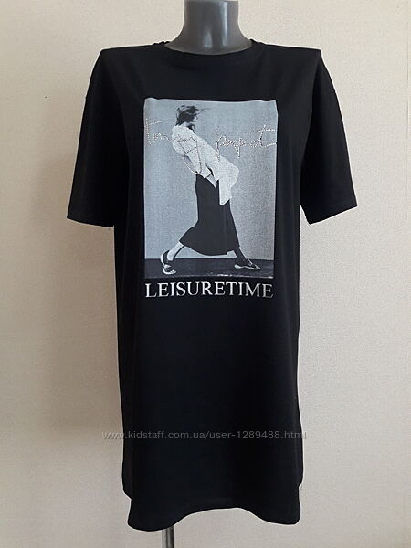 Модная стильная,мега качественная,базовая длинная футболкаКрасивая,стильная,модная,длинная модель футболки-туники!Футболка комфортного кроя,плечи оверсайз,с заниженной линией плеча.Эффектный декор-фотоколаж и надпись из страз.Натуральная ткань люкс качетва,приятная к телу.