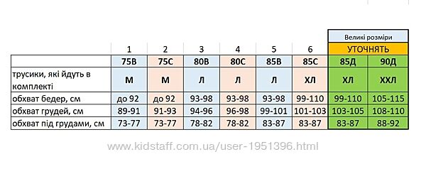 | Обхват под грудью | 75 , 80, 85, 90 |