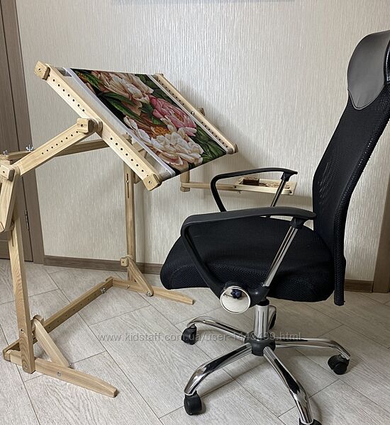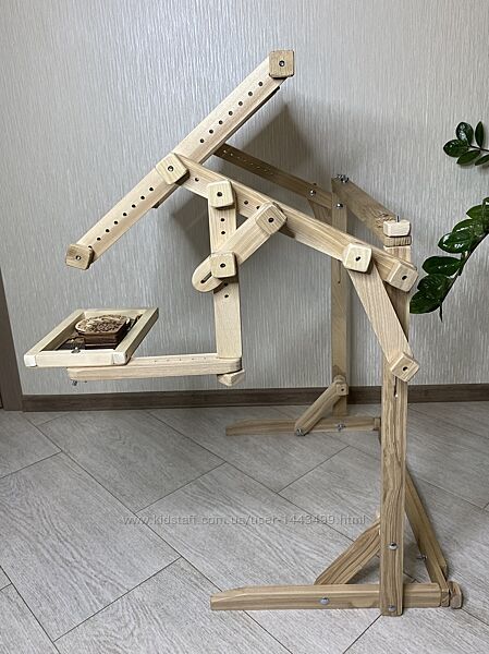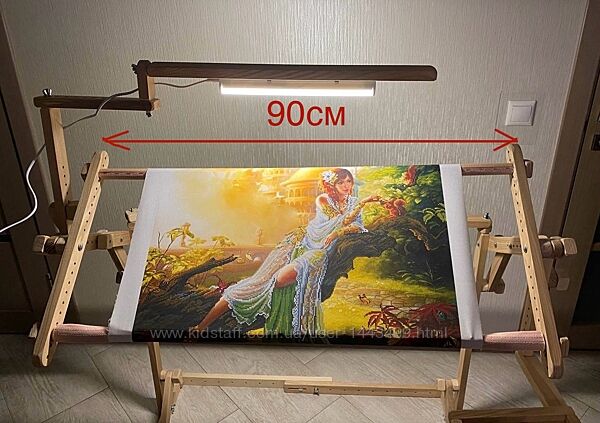 Станок укомплектован рамой с плотной х/б корсажной лентой шириной 5 см, хотя по согласованию с заказчиком может быть укомплектован и самозажимной рамой. Видео такой рамы вышлю по просьбе заказчика. Рабочая зона рамы 40х100 см. Рама плавно подгоняется под рост рукодельницы и надежно фиксируется. Стойки станка скреплены между собой раздвижными поперечными планками, благодаря чему можно закреплять рамы разного размера. В комплекте станка удобная полочка для мелочей, которую можно поворачивать на 360 градусов и регулировать по высоте. Держателем лампы станок комплектуется по просьбе заказчика за дополнительную плату (160 грн.).Материал - ясень+бук.