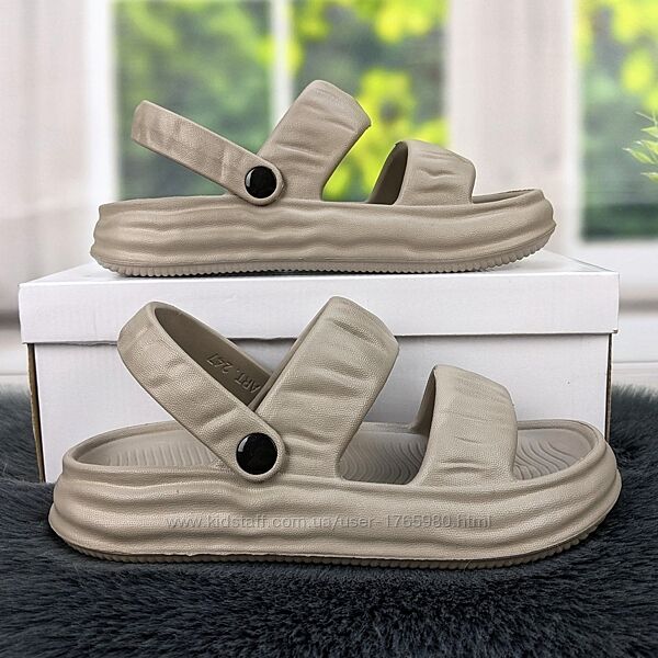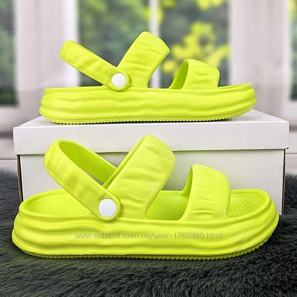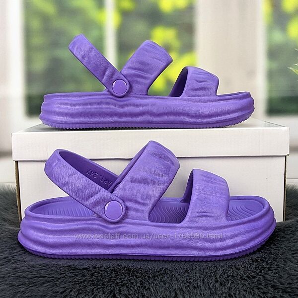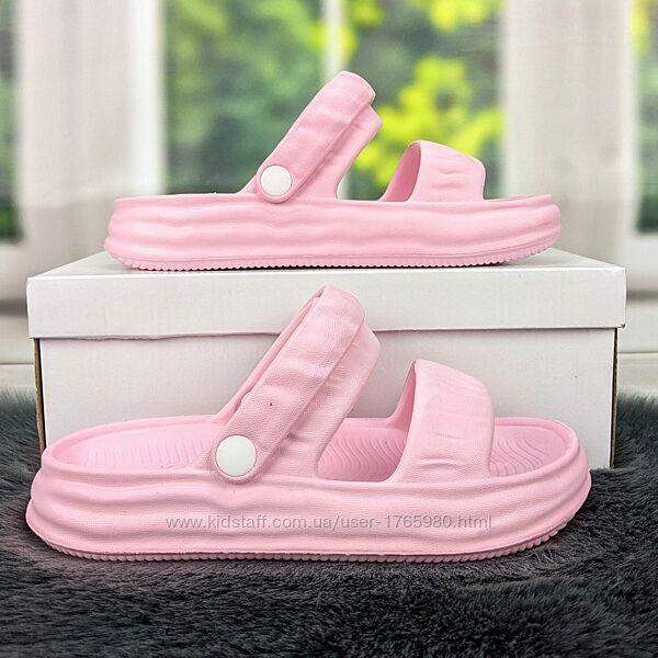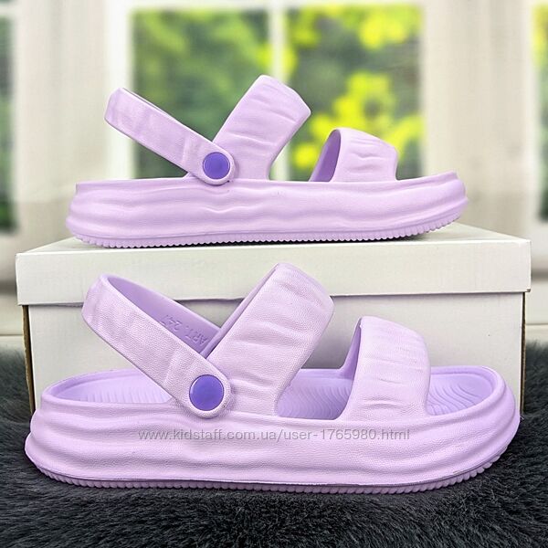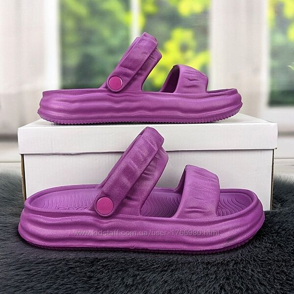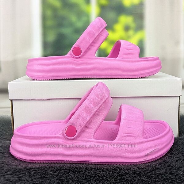 Классные легенькие сланцы-сандалии на объемной подошве. Изготовлены из мягкой гибкой пены (EVA). Высокая объемная подошва хорошо амортизирует при ходьбе, сглаживая неровности поверхности. Лямка на пятке растягивается, и хорошо фиксирует ногу. Так же можно перекинуть лямку на перед,и носить просто как шлепанцы.Идеальная пляжная обувь.Амортизирующая мягкая подошва.Отлично подходит для бассейна или занятий фитнесом.Прекрасная обувь для прогулок.Комфортное использование дома на скользком полу (плитка, ламинат, линолеум и т.д.)Легко моются.Ножки не потеют и не натирают.