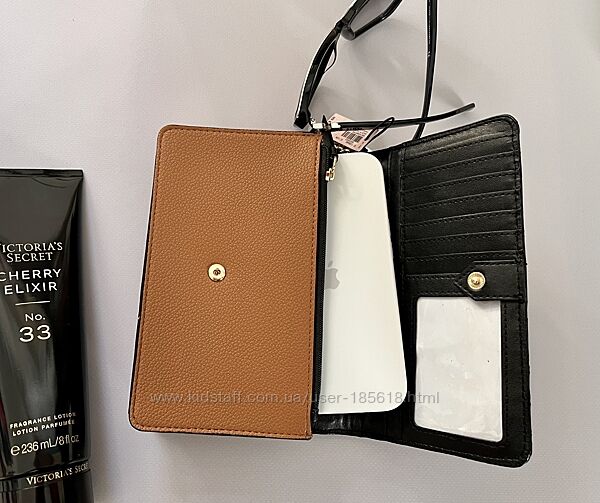 Необхідний аксесуар в гардеробі кожної дівчини - гаманець і клатч - два в одному, щоб все було впорядковано і під рукою, не залежно від того йдете ви на вечірку чи на роботу.Чорно-коричневий колір вдало доповнено золотою фурнітурою.