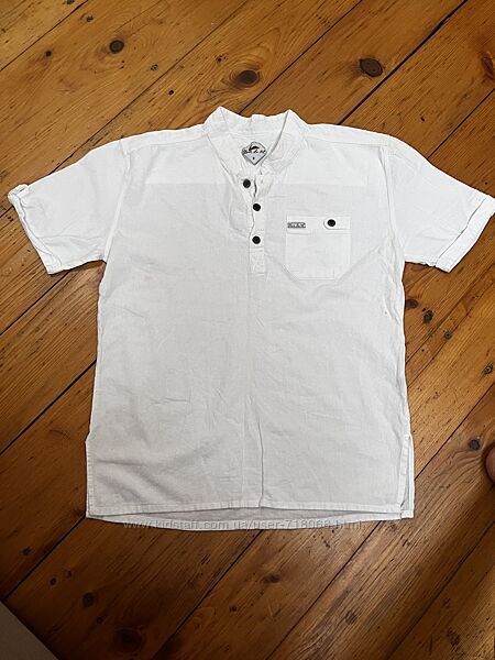 Розкішна чоловіча біла стильна натуральна сорочка з модним музичним