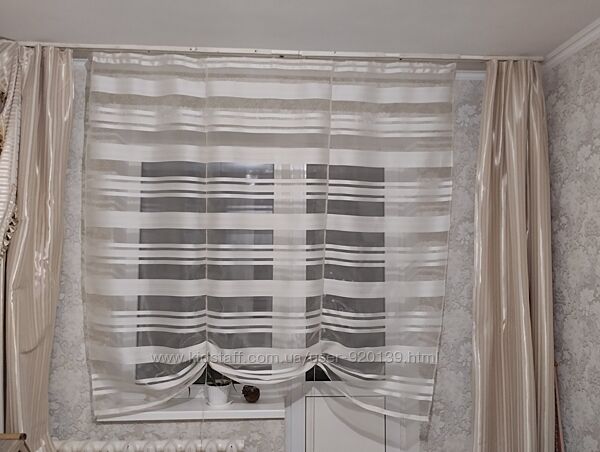 Новая занавеска, интересный дизайн. Высота регулируется. На верх пришивается сборочная тесьма.Ширина 1.90, высота 1.70