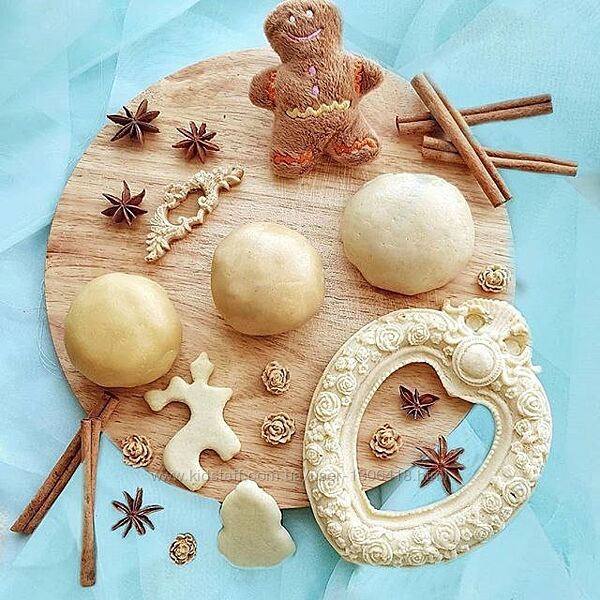 Третье... А вот тут восторг восторженный! Тесто НАСТОЛЬКО четко сохраняющее свою форму, что именно с ним возможна выпечка молдов без молдов! О как скаламбурила... Поясняю: можно сформовать тесто в молдах, достать его оттуда и отправить в духовку и оно четко передаст все впуклости-выпуклости, практически не увеличиваясь в размерах (1-2 мм ведь не считается?!), при этом сохранив мягкость и практически белый цвет (рамочку видите? Она выпечена именно по такому вот принципу!)... Это действительно - игрища с молдами теперь превращаются в сплошное удовольствие!