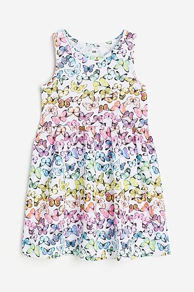 Платье без рукавов из хлопкового трикотажа с набивным рисунком - Разноцветных бабачек.