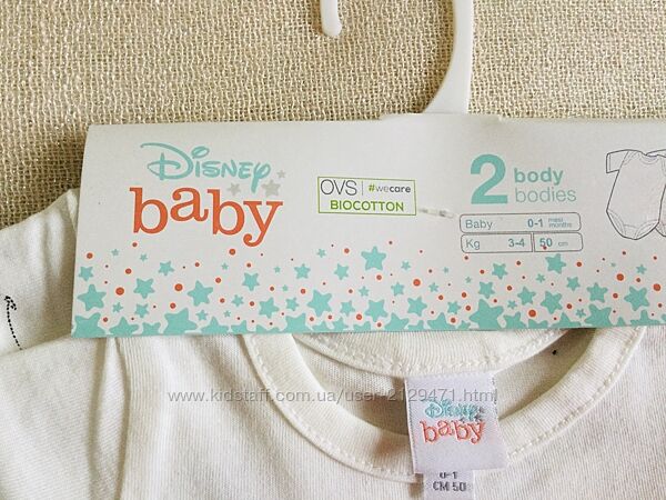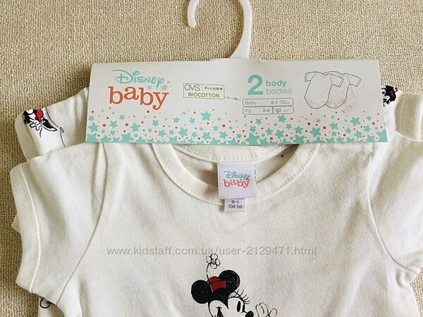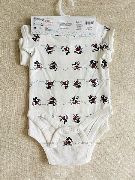 Disney by OVS. Італія. натуральний Боді короткий рукав, Міккі Маус чоловічок, сліп з яскравим принтом. 100%bio cottonРозмір: 50 см