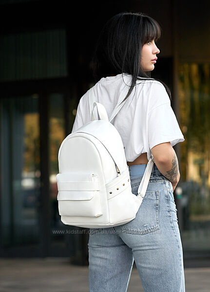 Рюкзак женский стильный кожаный эко заклепки цвет на выбор белый бордовый