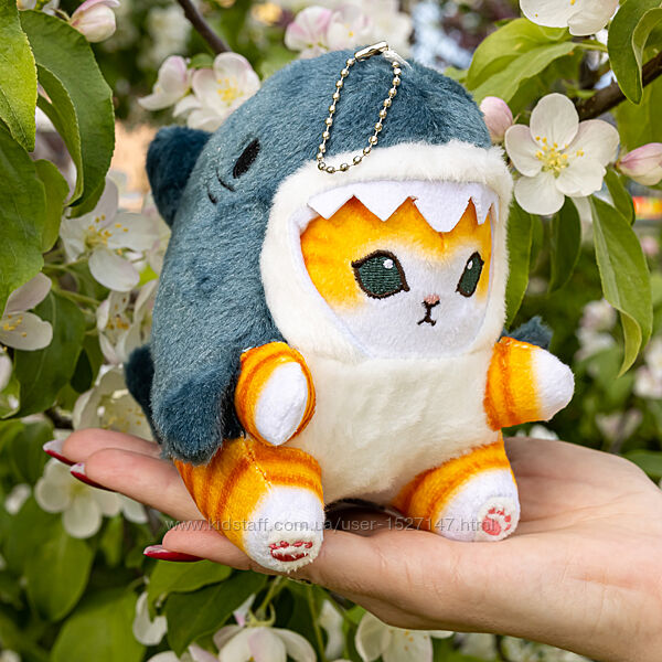 Плюшева м´яка іграшка котик в акулі є в наявності у двох розмірах: 13 см, 25 см.