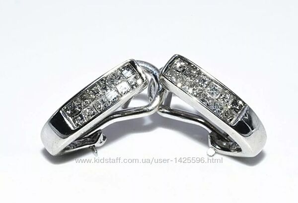 Новые серьги белого золота (14К) с белыми бриллиантами огранки Принцесса. Количество камней 24шт. (2*12), общий вес 0.90 карат. Параметры G-H/Si2 (2-3/5). Надёжный итальянский замок. Размеры серёжек - высота 14.5мм, толщина 4мм. Вес 3.49 грамма. Стоимость только золота 3,31*77,2=255,53$. Цена 700$. Смотрите все мои объявления.