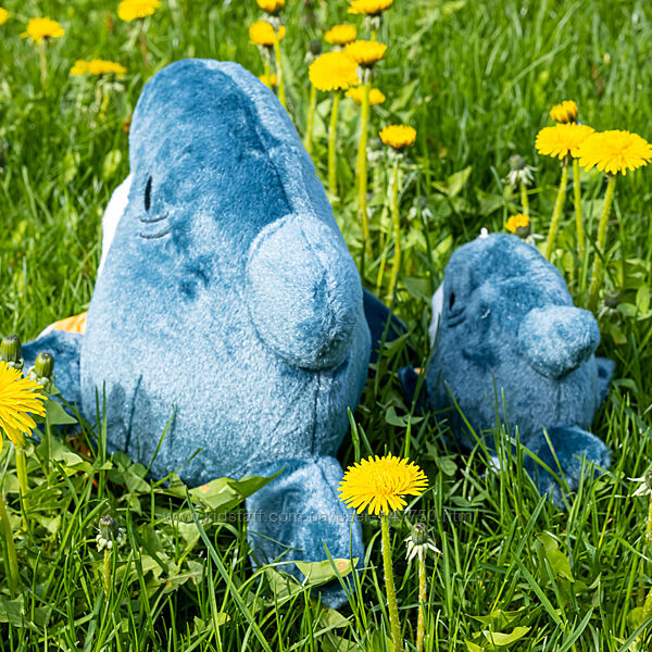 Мягкая игрушка кот в костюме акулы есть в наличии в двух размерах: 13 см, 25 см.