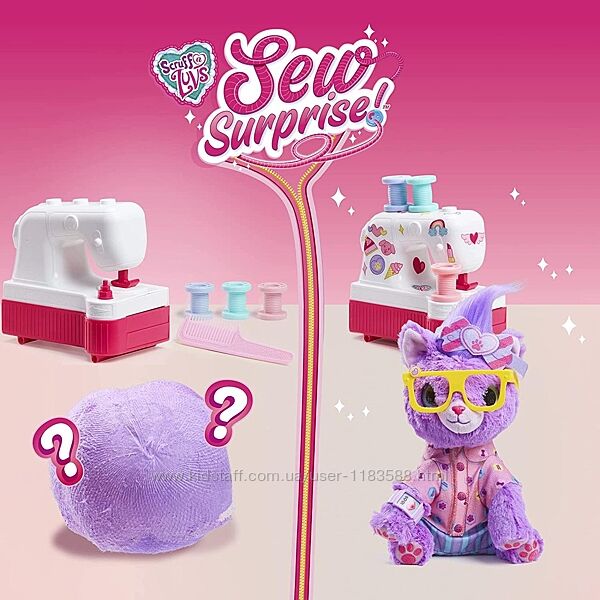 Новий Sew Surprise від Scruff-a-Luvs сповнений несподіваних відкриттів. Якого кольору буде ваша швейна машина? Якого кольору та стилю аксесуари ви отримаєте? Граючи зі своїм новим пухнастим другом, ви відкриєте для себе 10 сюрпризів.Вимийте, висушіть та розкрийте
