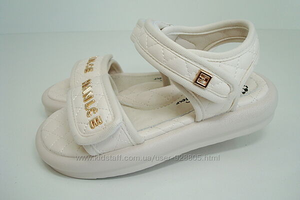 Ці босоніжки сандалії нейтрального молочного відтінку – стильний варіант елегантного та модного літнього взуття. Головною особливістю дизайну виступає стьобана поверхня перемичкек та області, що контактує зі стопою, що дарує їм самобутній зовнішній вигляд. Такі сандалії обов´язково стануть м´яким акцентом аутфітів вашої дівчинки для повсякденних та урочистих заходів.Матеріал: