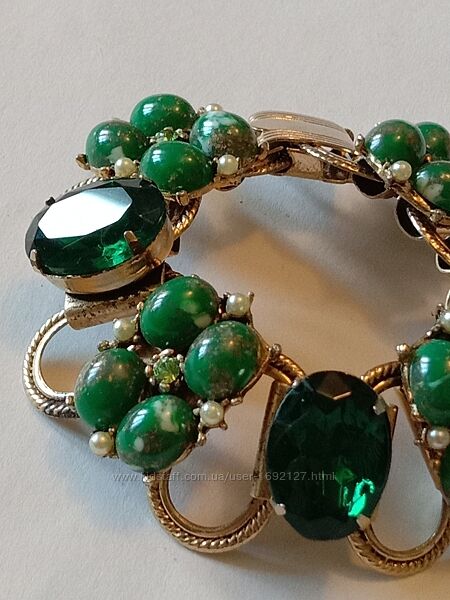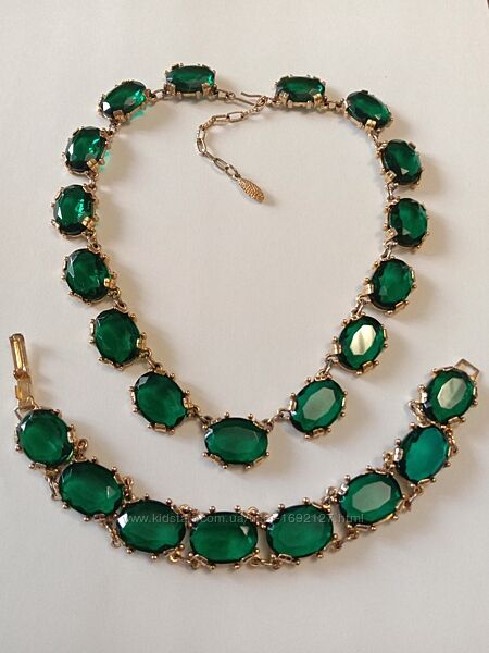 Колье и браслет Sphinx изумрудное стекло винтаж