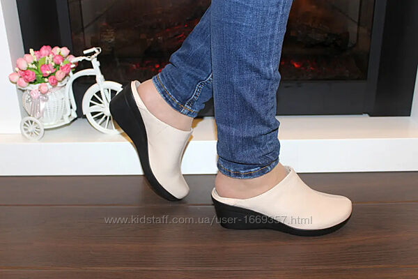 Подробное описание: Сабо шлепанцы бежевые женские на танкетке натуральная кожа б405-1