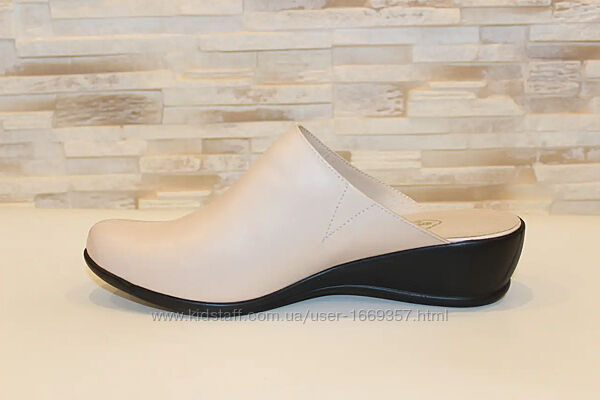 Сабо шлепанцы бежевые женские на танкетке натуральная кожа б405-1
