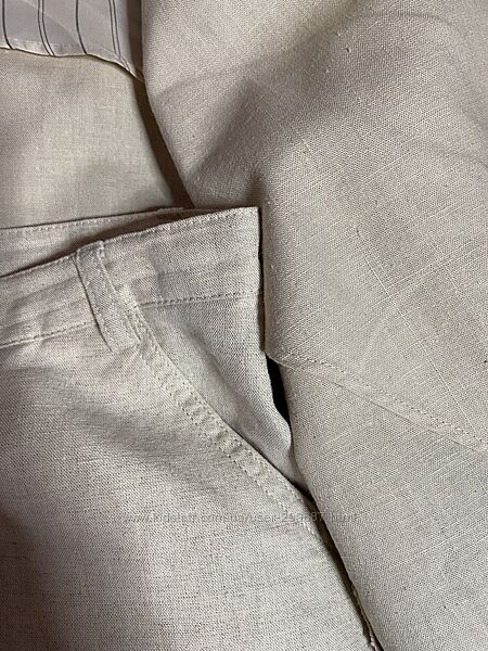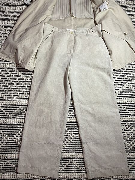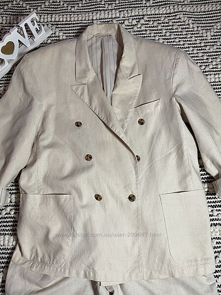 Костюм подобранный, попадание цвета и текстуры практически 💯(фото 6 , на солнечном свету). Пиджак состав: Рами ( натуральная ткань, , хлопок. Брюки:хлопок, лён.На пиджаке накладные карманы, рукав можно подвернуть , как на фото. В замерах будет указан полная длина рукава.