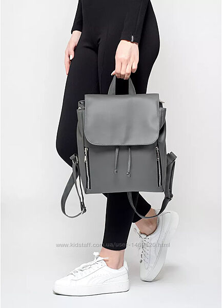 Подробное описание: Рюкзак белый серый кожа эко женский черный стильный клапан шнурок