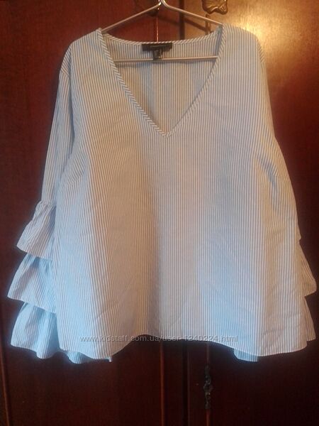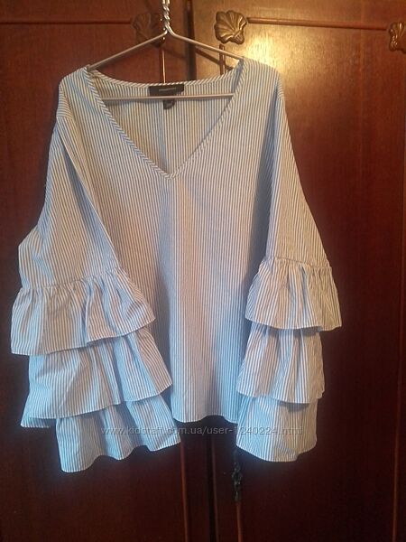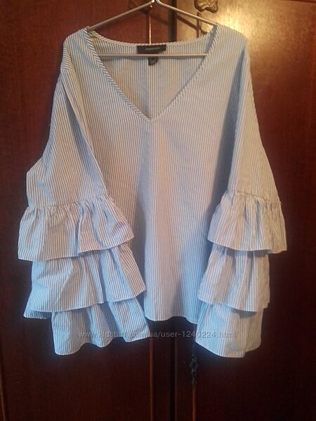 Рубашка женская голубого цвета с пышными рукавами, ткань натуральная, дефектов нет , без пуговиц.Замеры пл.42, о.г114, рукав 60, длина 62.Покрой прямой.Другие объявления продавца