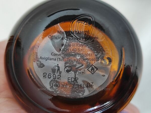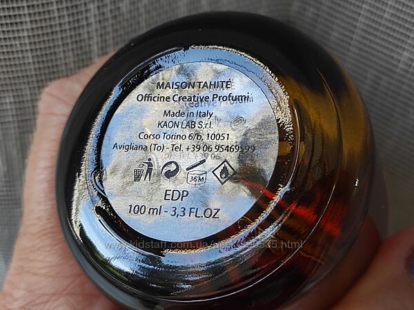 Всі флакони марки Maison Tahité і цей, виготовлені з темно-коричневого скла, що відсилає у світ фармації, а їх золотаві пробки є нахилом до традиційної розкішної естетики. Бренд орієнтований на проекологічну діяльність та сталий розвиток. Для виробництва своєї упаковки він використовує перероблений папір, рослинний клей або папір зі шкаралупи мигдалю.