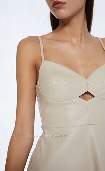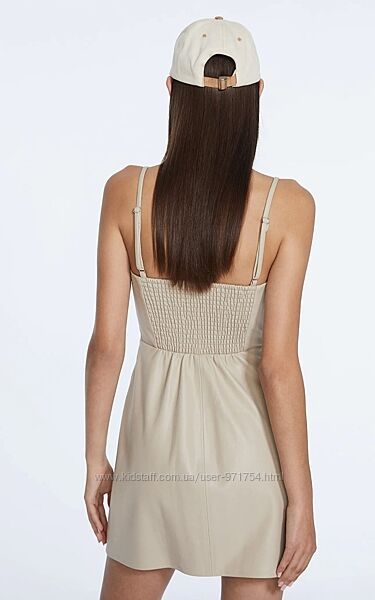 Подробное описание: Короткое бежевое платье из экокожи от stradivarius размер М