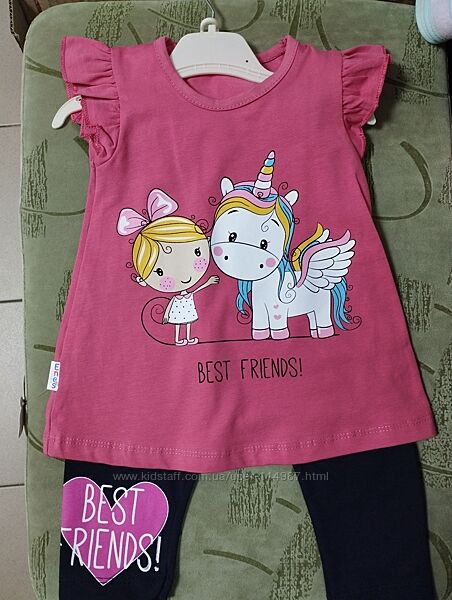 В наявності комплекти для дівчаток. Туніка і лоссіни 3/4.Виробництво Турція. гарної якості. 95% х/б, 5% елестан. Розміри 2 роки, 3 роки, 4 роки. Туніка в 2-х кольорах380 гр