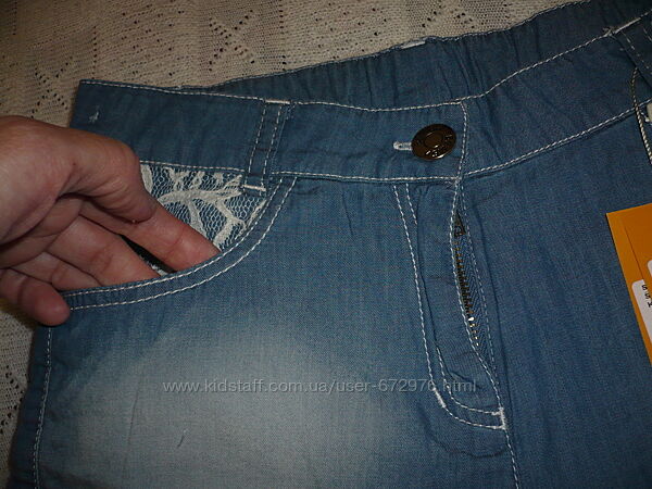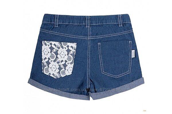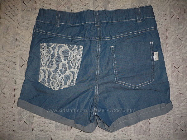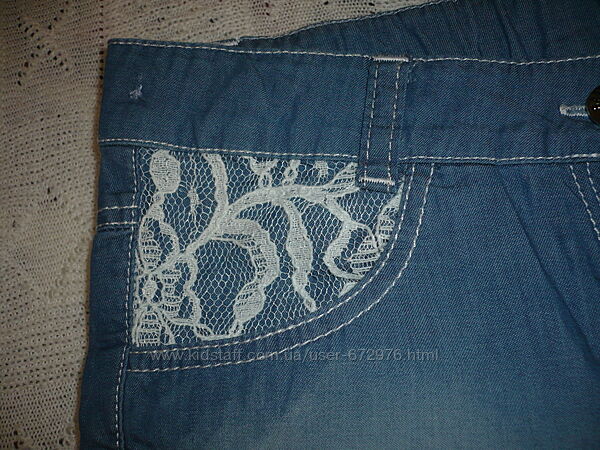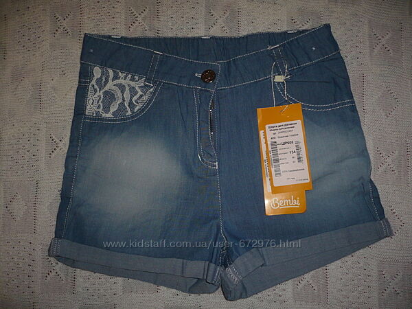 Джинсові літні легенькі шорти для дівчинки з мереживом Бембі р. 134