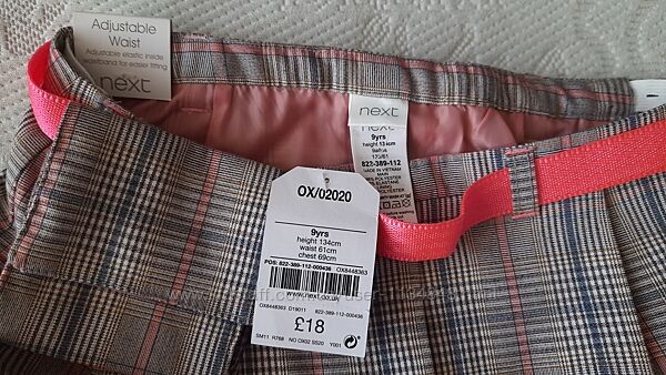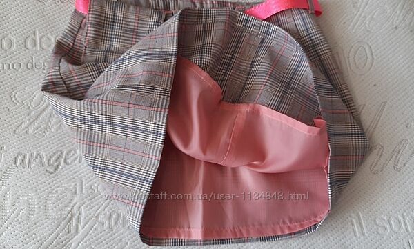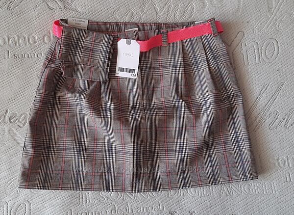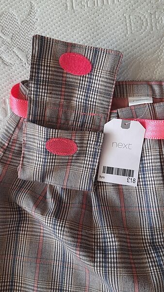 юбка в клетку Next на 8-9 лет. Состав: 98% полиестер+2% элостан. Розовый поясок на липучке.---Замеры: дл-32 см, талия 31 см ( есть утяжка)., бедра-40 см.
