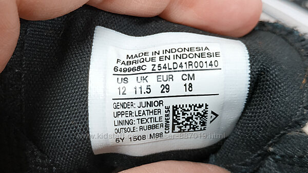 Дитячі кеди Converse all star, оригінал. Натуральна шкіраРозмір вказаний UK 11.5 / 29 / 18, довжина устілки 19.8 см, ширина устілки 6.9 см.