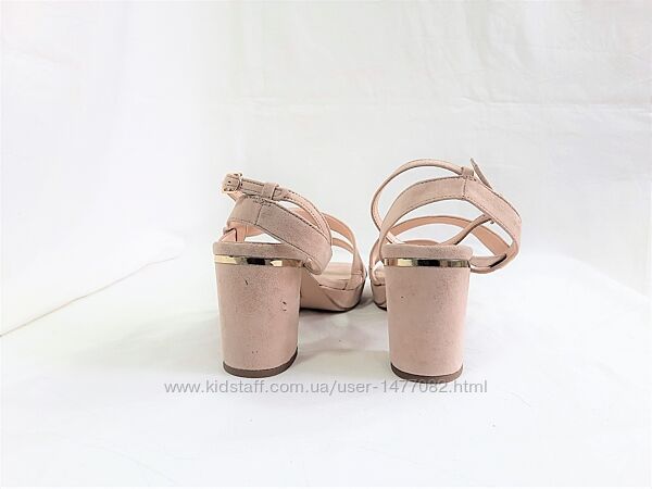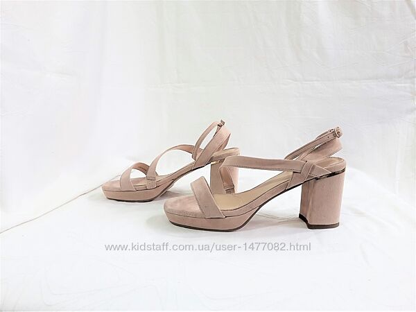 Нові, сток, не носилися.Верх натуральна замша бежево-рожевого кольору, всередині екошкіра, устілка — натуральна шкіра, чудовий дизайн. Гарні ефектні босоніжки. Є зачіпки на каблуках (сток), можна підклеїти, в ціні враховано.