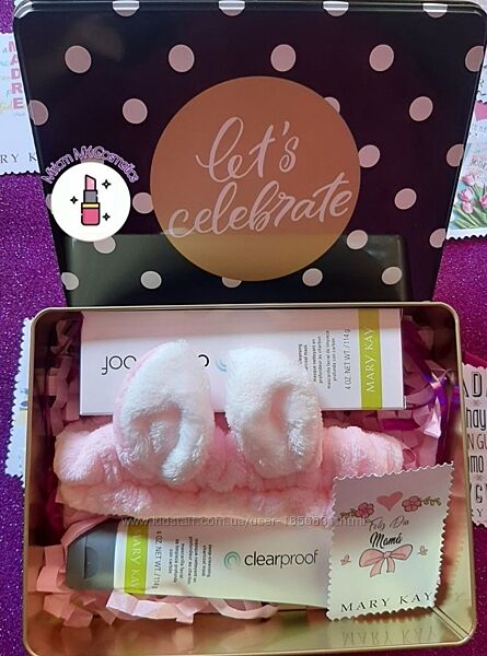 Праздничный бьюти-бокс от Мери Кей (светлый или темный на выбор) Выполнен в экотренде - из крепкого жестяного материала и предназначен для многоразового пользования. Надпись Find joy - Найди радость. Надпись Let´s celebrate- Давай праздновать. Размер бокса : 23 × 17,8 × 7,2 см в комплекте бумага