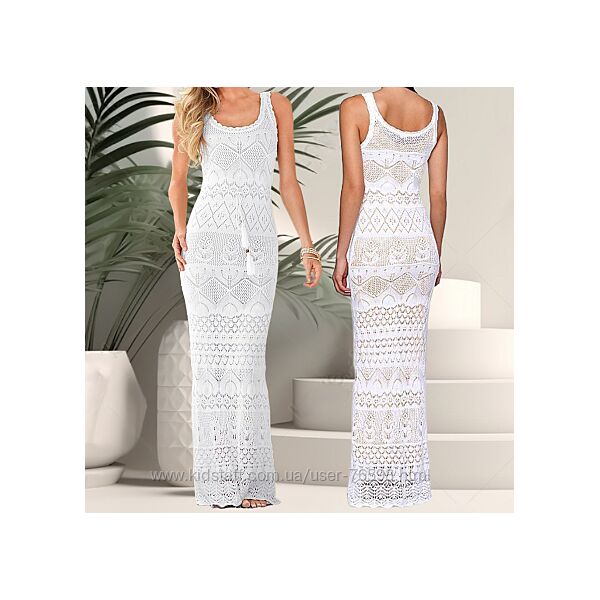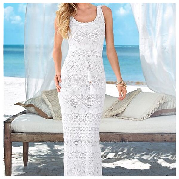 Платье б/у один раз в состоянии нового. Цвет - белый. Состав: 50% вискоза 50 % хлопок Поясок отсутствует. Размер наш 46 или 38 евро (М-ка) Замеры платья в нерастянутом состоянии (растяжимость за счет ажурной вязки высокая): - полуобхват груди - 46 см - полуобхват талии - 38 см - полуобхват бедер -47 см - длина платья - 140 см