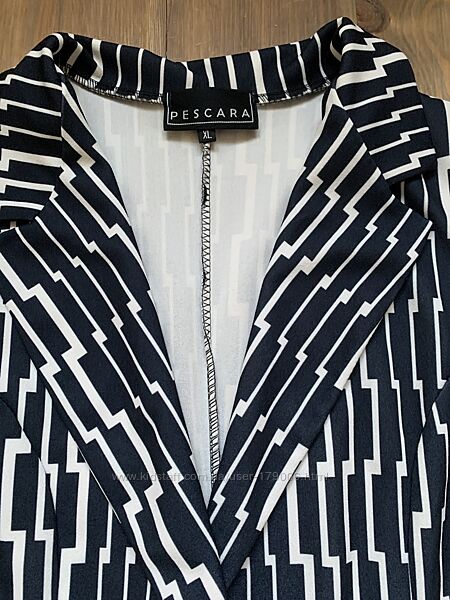 Пиджак летний трикотажный, цвет темно синий с белым. Размер указан ХЛ, но идет на наш 48р. Цена 150 грн. Состояние идеальное, красиво сидит по фигуре. Замеры: ПОГ 48 см ПОТ 42 см Длина 59 см Рукав 62+11 плечо Плечи 41 см