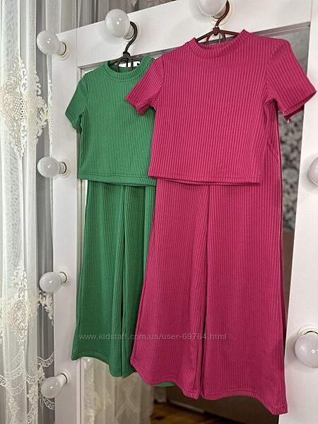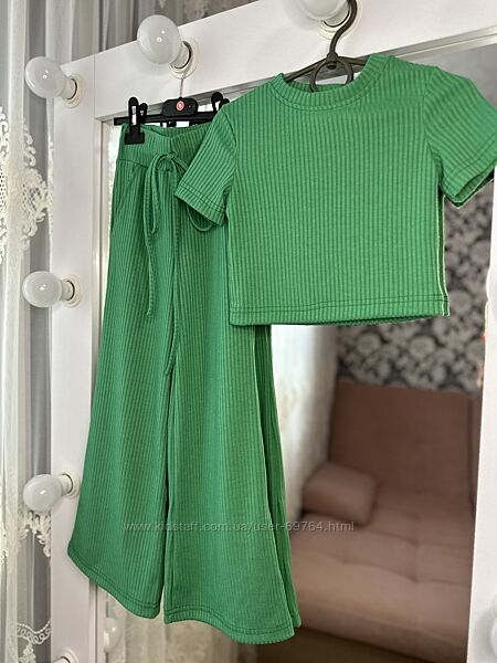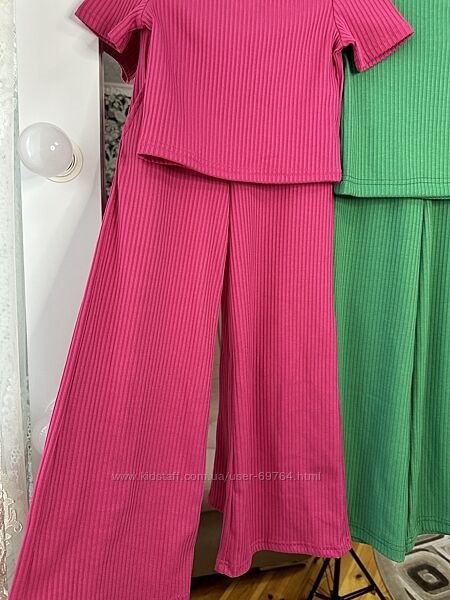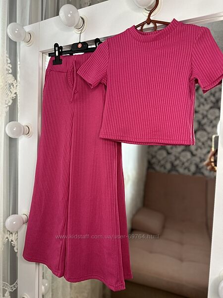 Костюм в рубчик, палаццо и футболка Р.116-140
