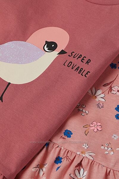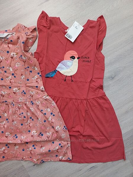 Сукні з м’якого бавовняного трикотажу фірми hm.Сукні з принтом із мереживними рукавами, зібраним швом на талії та розширеною спідницею.