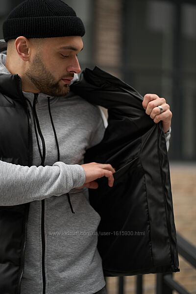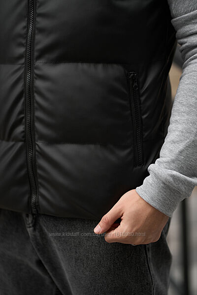 - У жилетці є три кишені (дві прорізні кишені з боків на змійці + одна внутрішня кишеня для особистих речей)