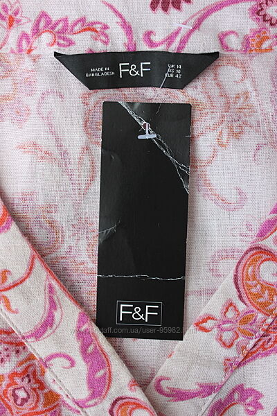 Льняна сукня, квітковий принт F&F, 55% льон, 45% віскоза. прекрасна сукня на літо, не прозора, не стоїть колом, без підкладки, і тому зовсім не спекотна. Ніжна, приємна, м´яка. у бічних швах є кишені. Акуратна, не надто вирізана пройма. На бирці 14 розмір, реальний колір на другому фотопог-54, поб-61, довжина-96 см.