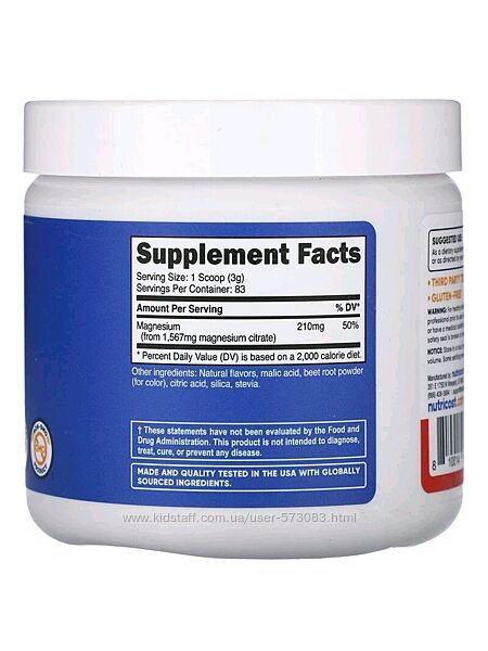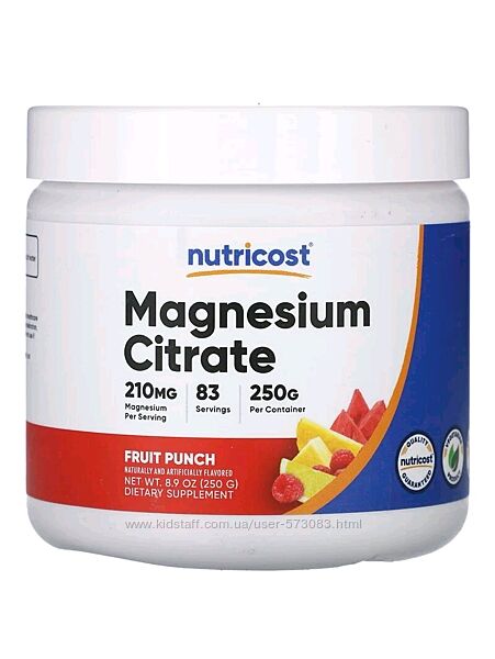 Подробное описание: Nutricost магний цитрат в порошке, со вкусом фруктовый пунш - 250 грамм
