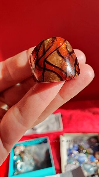 Яркое, заметное кольцо в контрасных оттенках. Размер около 19,5-20. На фото есть еще варианты колец в размере 19,5+)(Помимо этого есть еще кольца в других размерах, смотрите в объявлениях или по конкретному запросу могу прислать фото наличия в определенном размере).