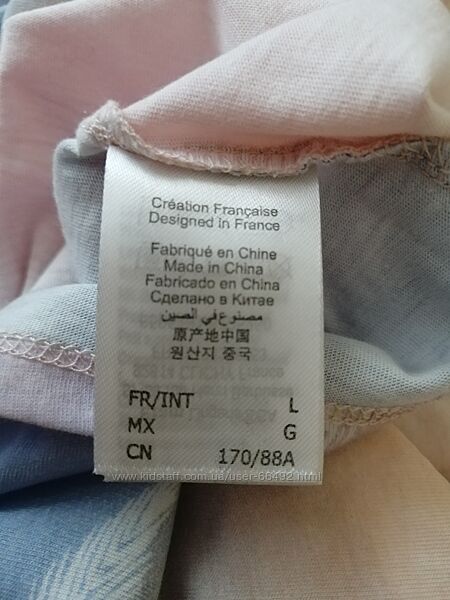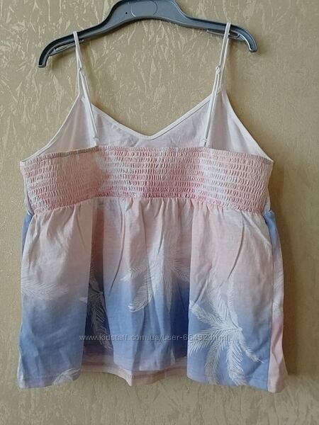 Новая майка от Etam (Франция). Не сток. Бирка есть, но слетела, пластиковый держатель и все внутренние бирки на месте. Размер европейский 40, наш 48.Состав на фото. Нежный розовый, голубой, персиковый рисунок. Бретели регулируються. Сзади мелкие вафельные сборки. На летнюю жару - идеальный вариант.